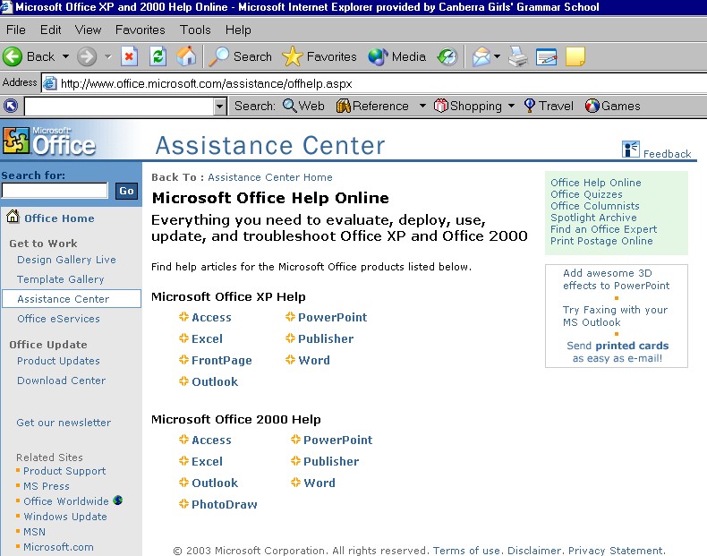 www.officemicrosoft.com/assistance/offhelp.aspx you will be able to follow the links to the help articles listed.